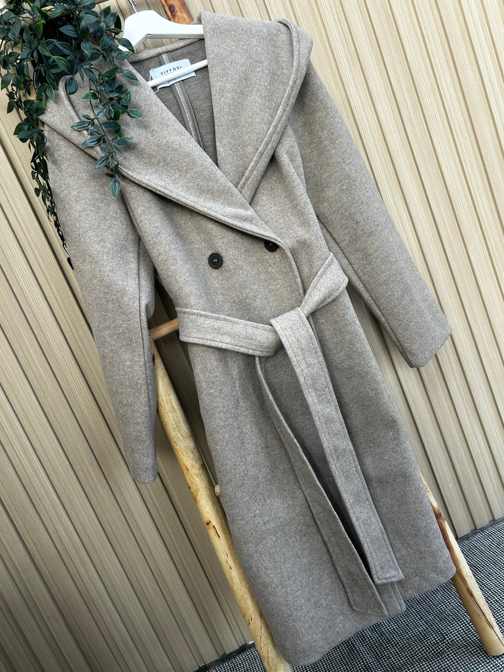 Un abrigo largo de paño con un diseño moderno y funcional,confeccionado en un tejido cálido, suave y estructurado que proporciona comodidad y elegancia durante los días fríos.