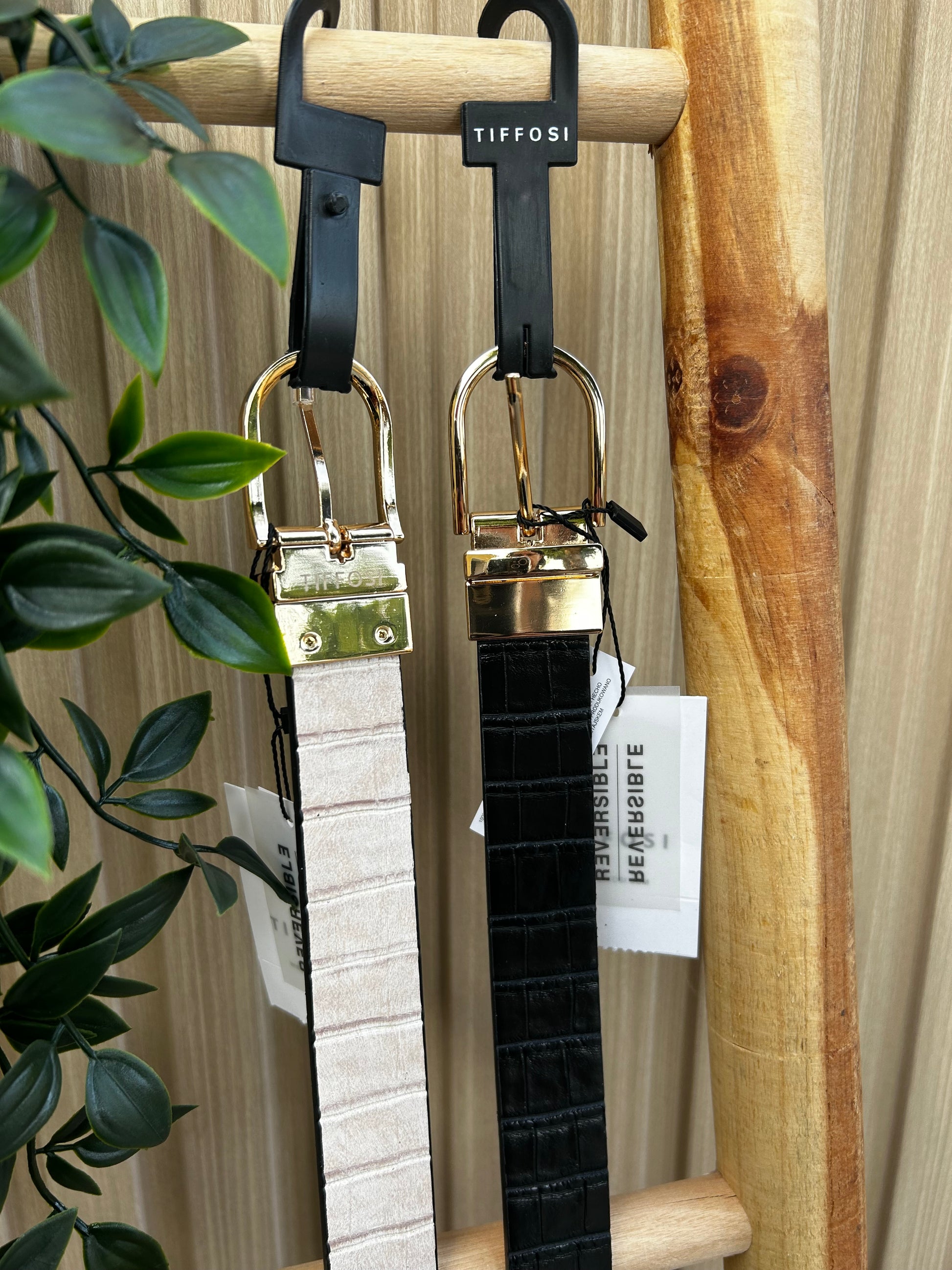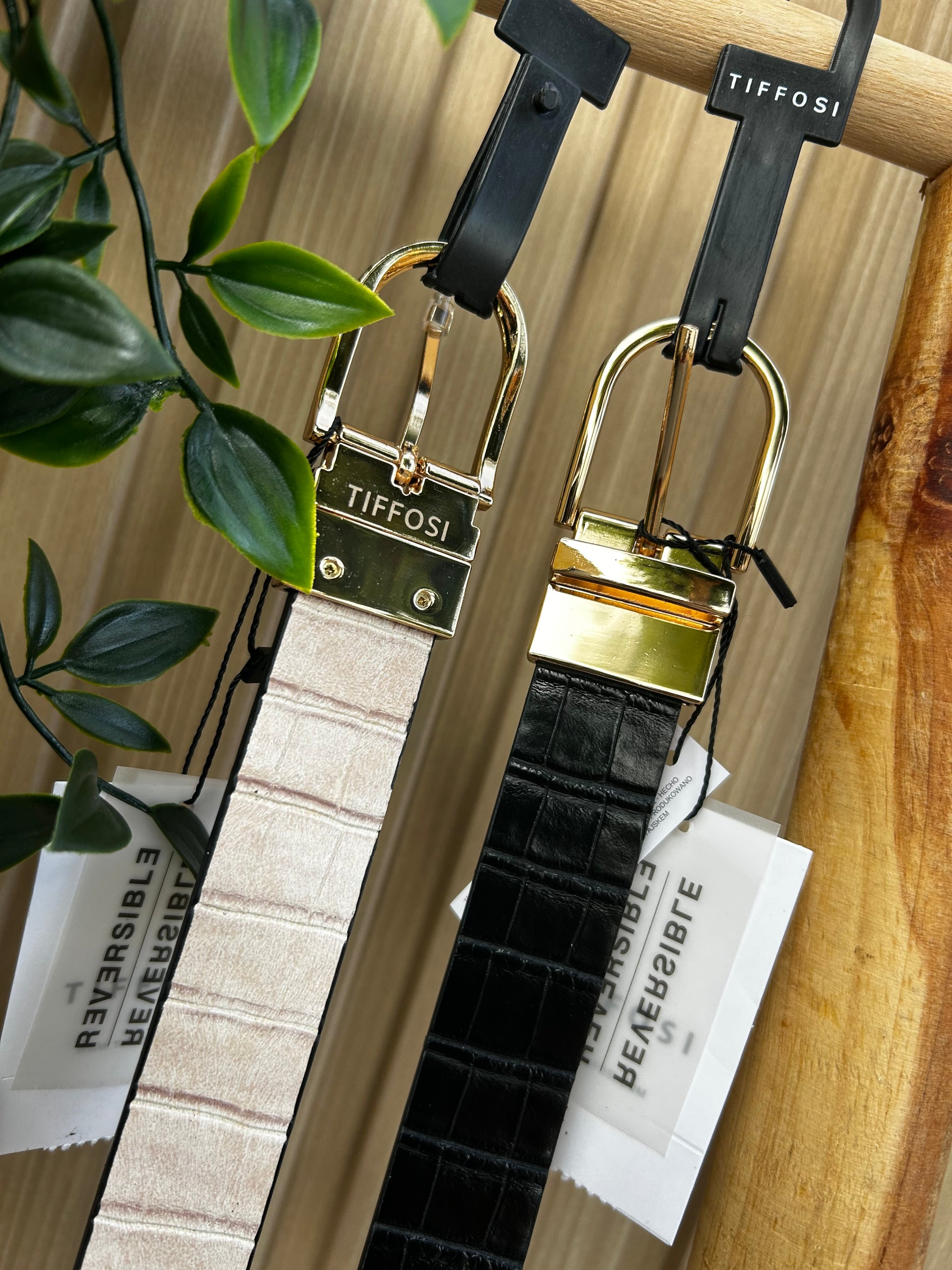 Por un lado negro clásico y otro beige neutro. Hebilla giratoria que permite cambiar de estilo en segundos.Ideal para cualquier look,de forma a casual.