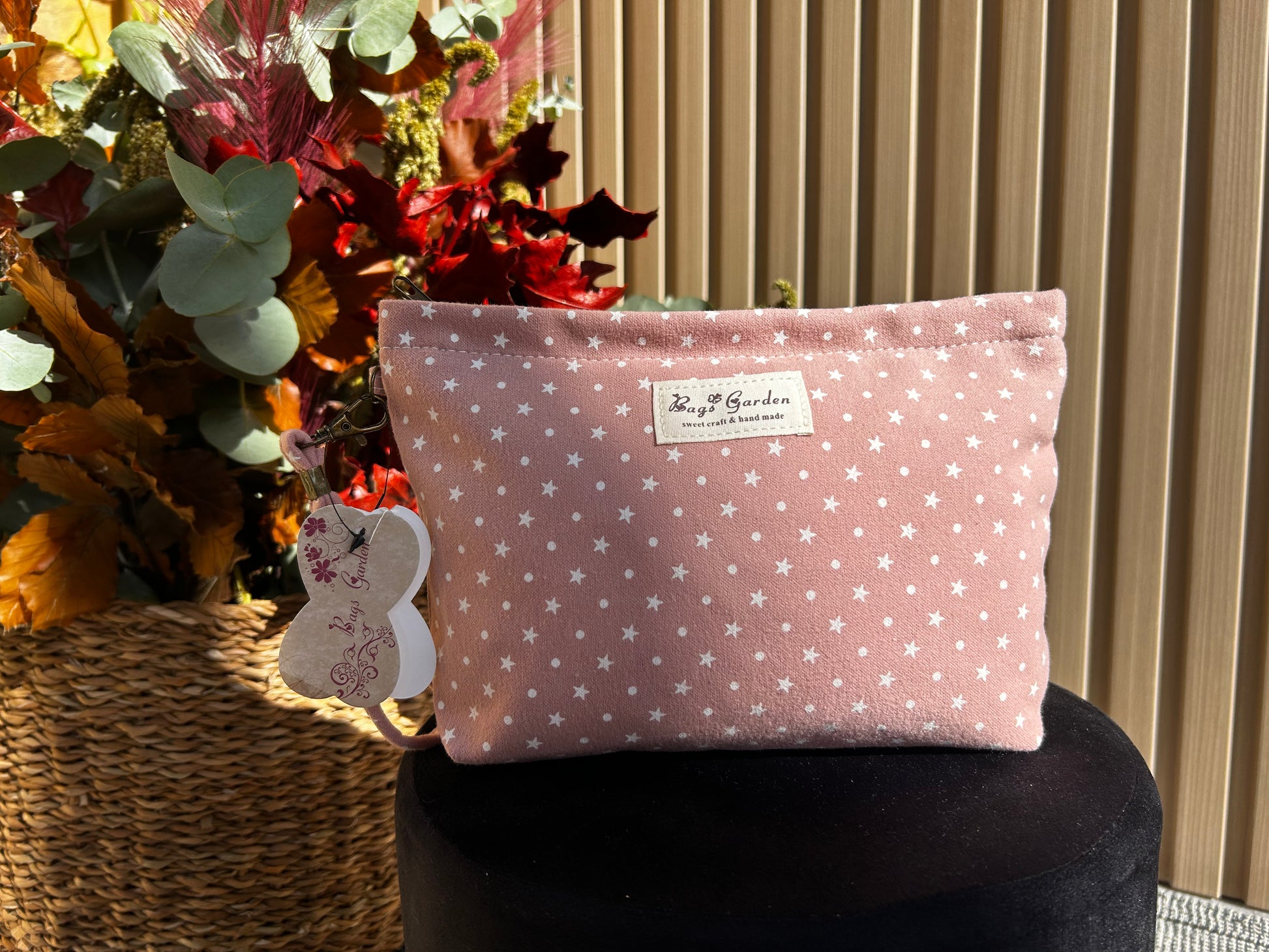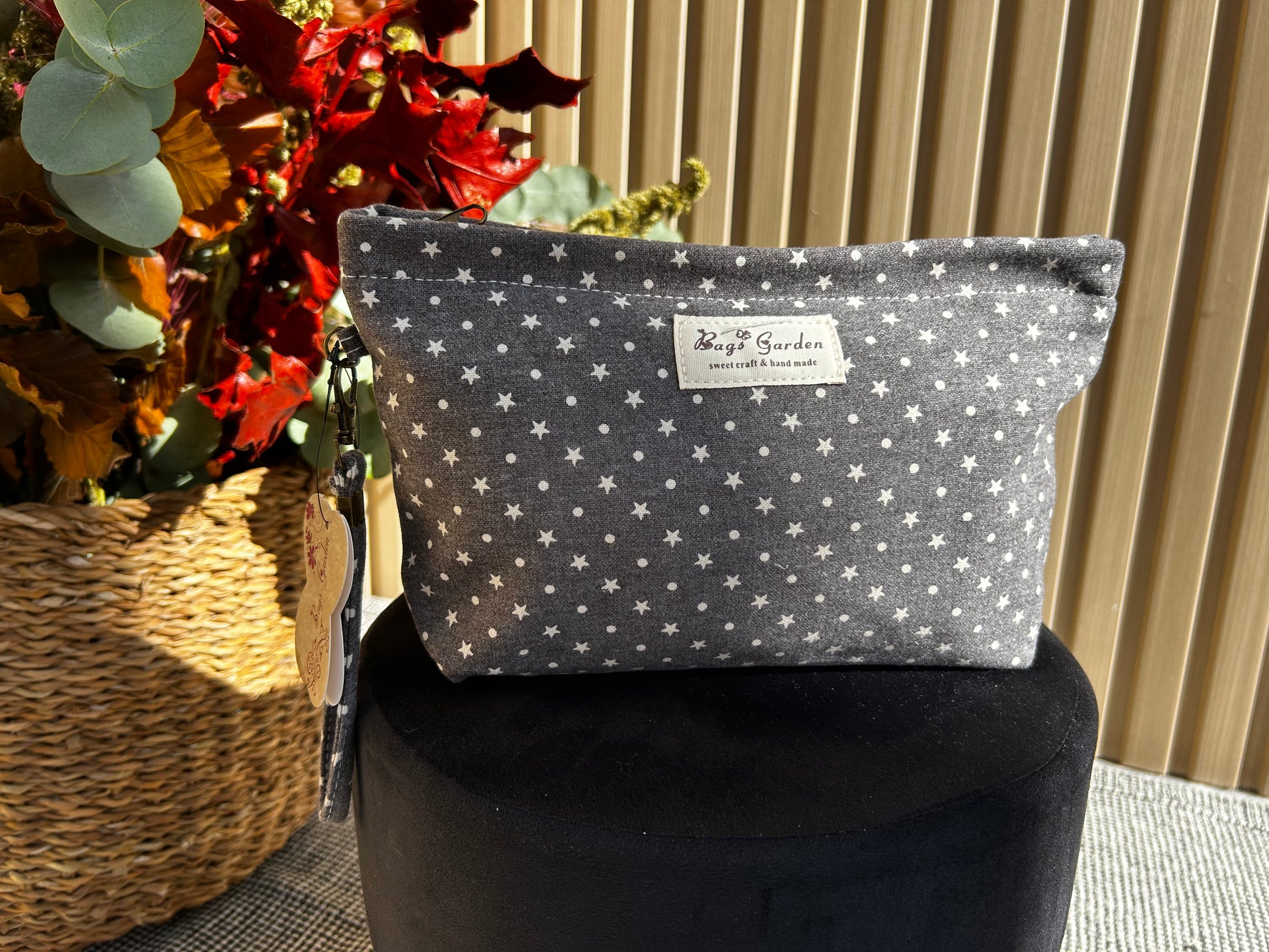 Guarda tus esenciales con estilo en este precioso neceser decorado con un elegante decorado d estrellas .Su diseño moderno y brillante lo convierte en el complemento perfecto para viajes, el gimnasio o el día a día.